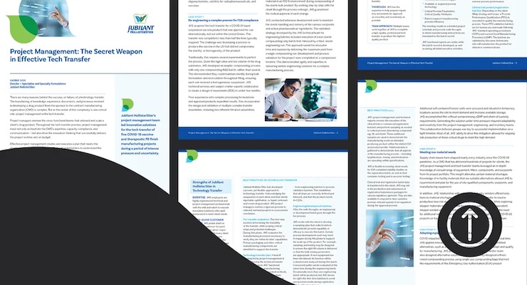 Learn how project management effectively steered 5 COVID-19 projects and discover Jubilant HollisterStier's best practices for tech transfer.