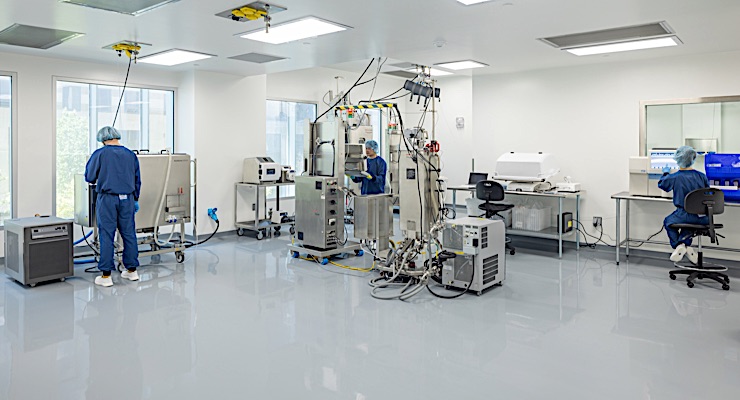 Includes two single-use drug substance lines, warehousing, cold chain, a buffer and media prep suite, and two master cell banking suites.