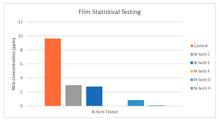 Figure 5. NOX concentration in the vials after seven days at 60°C in the absence of “N-Sorb” film (Control) or in the presence of different engineered impurity scavenging “N-Sorb” films.