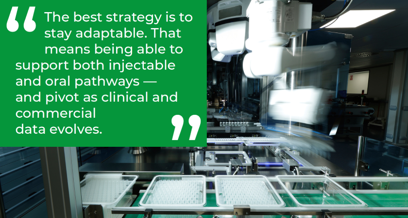This adaptability is particularly relevant for GLP-1 therapies, where injectables remain the dominant and most effective format — but flexibility to support oral forms when needed adds value for partners. At the same time, pharma companies continue developing lower-volume therapies—making it essential for CDMOs to support both large-scale and niche projects. The ability to support both paths — and adjust based on clinical progress or market shifts — will be essential in the years ahead.